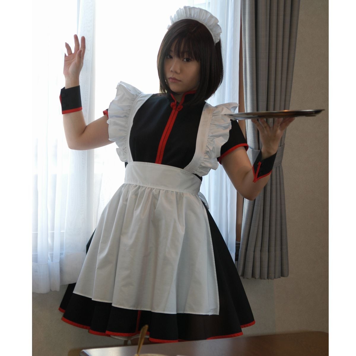 胸にデザインポイントがあるワンピースに合わせた、可愛いエプロン。